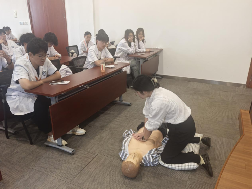 学生在基地技能培训室开展心肺复苏、外伤包扎、应急救护等社区实用技能实操训练,通过 “理论讲解+模拟操作+考核评估” 模式,学生不仅熟练掌握应急处置流程,提升实战能力,更在模拟急救场景中体会到医学生的严谨性与对患者的人文关怀。